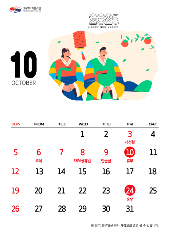 코리아텅스텐은, 추석 및 연이은 휴일로